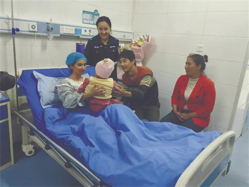 4月17日,获救幼童在父母的陪伴下到病房看望布帕太姆·阿布杜喀迪尔。李远明 摄